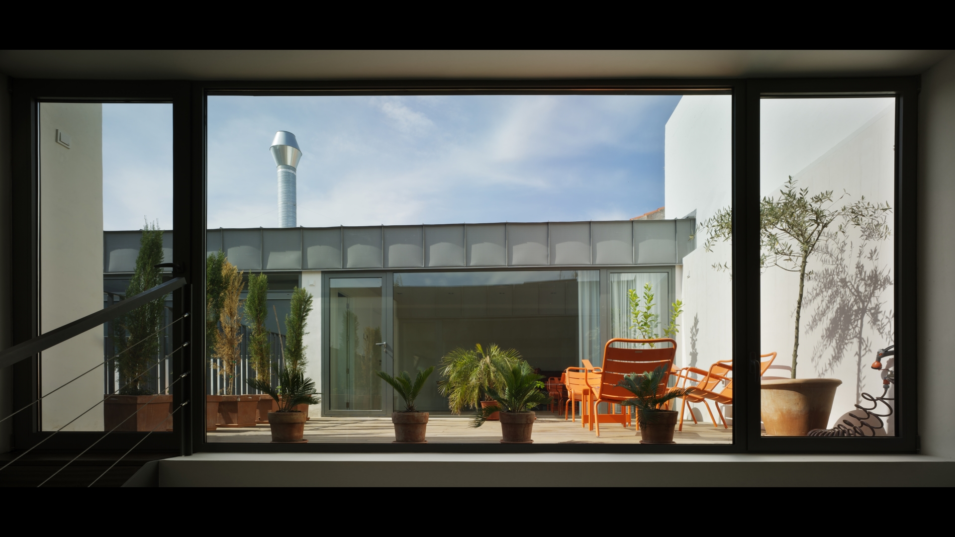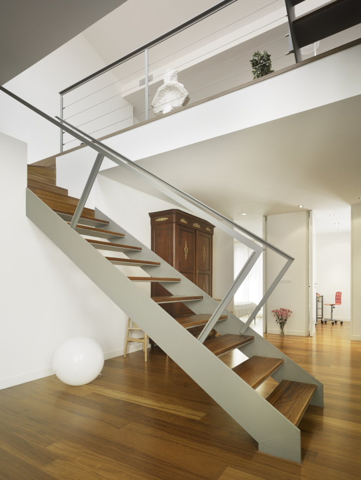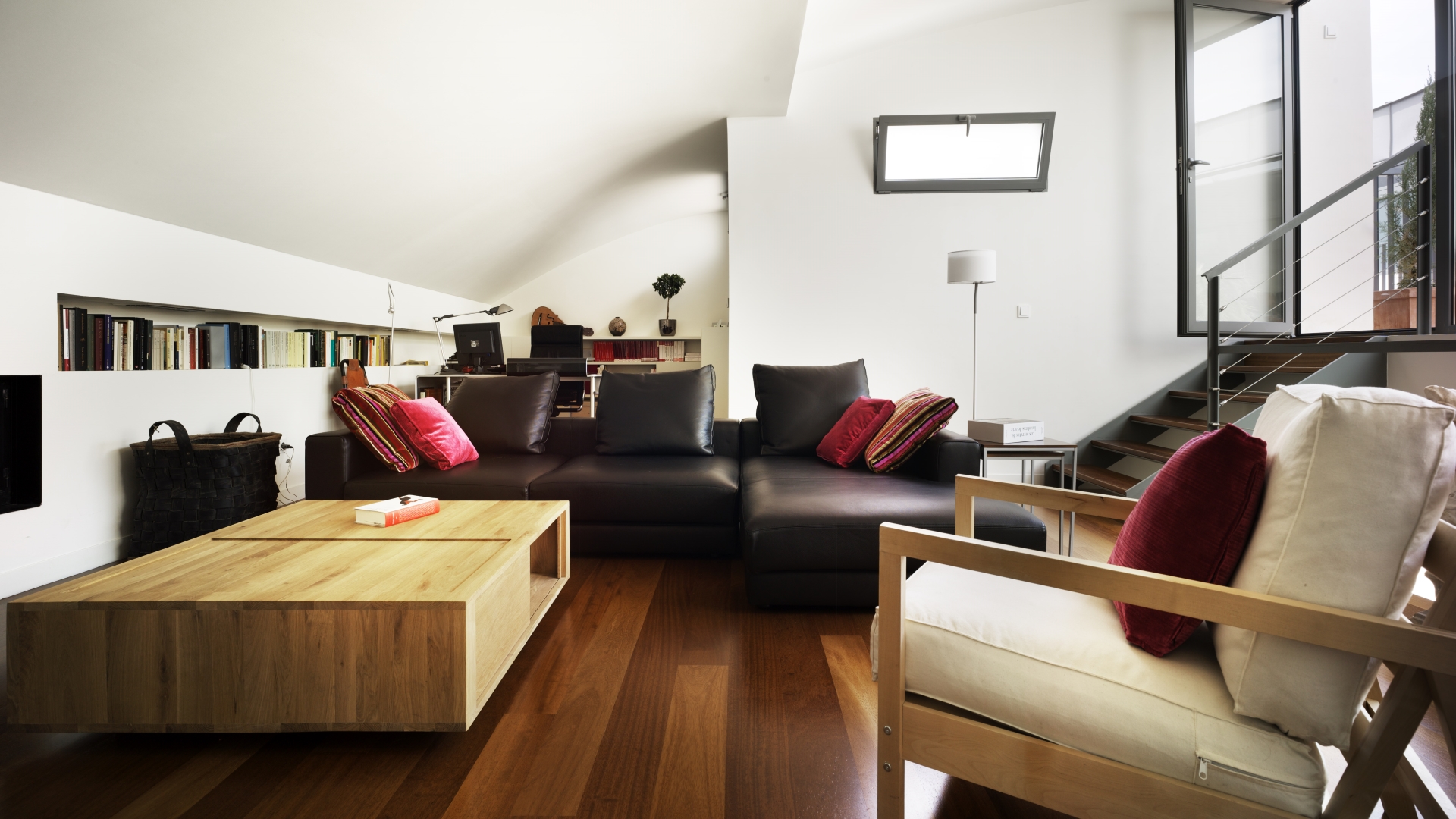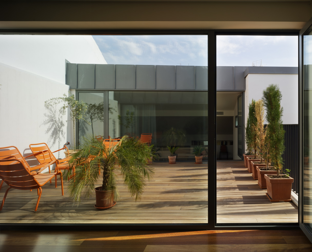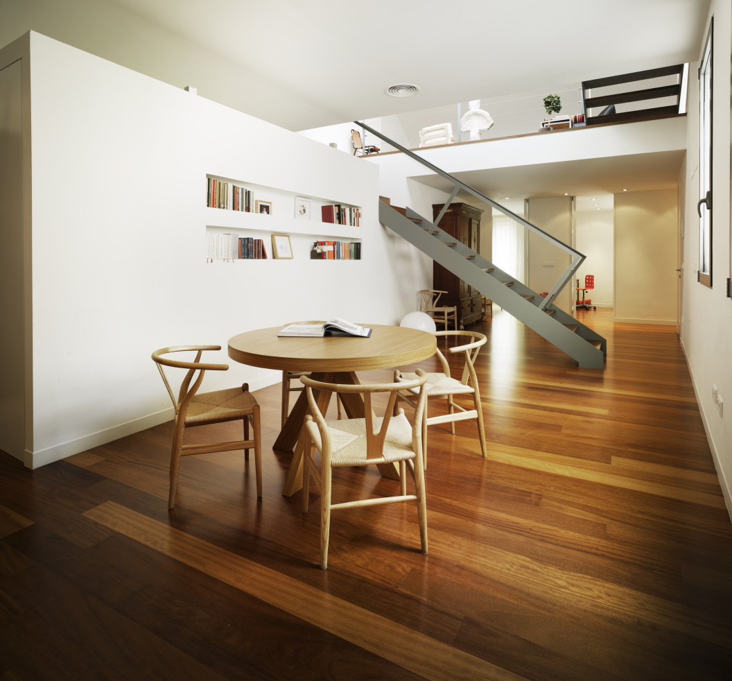 Vivienda de 180 m2 en el centro de la ciudad, estructurada en tres niveles, organizados sobre un espacio común que integra la cocina, comedor, entrada y sala de juegos, comunicado visualmente a través del hueco de la escalera, con el salón situado en el bajocubierta de la planta superior. Un metro más arriba, está situada la terraza. Desde la sala de estar se obtiene una vision de toda la casa.