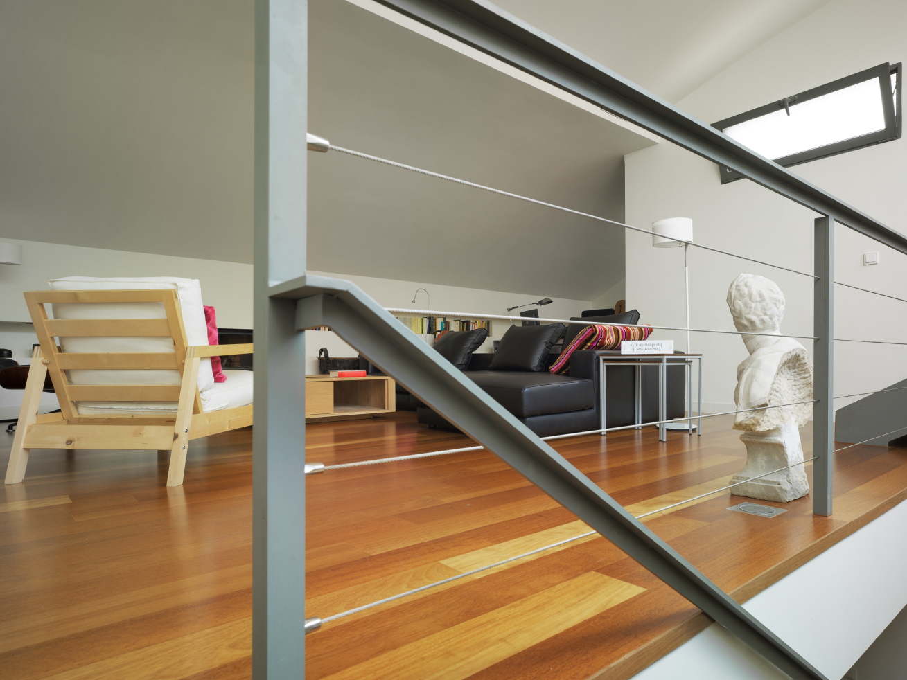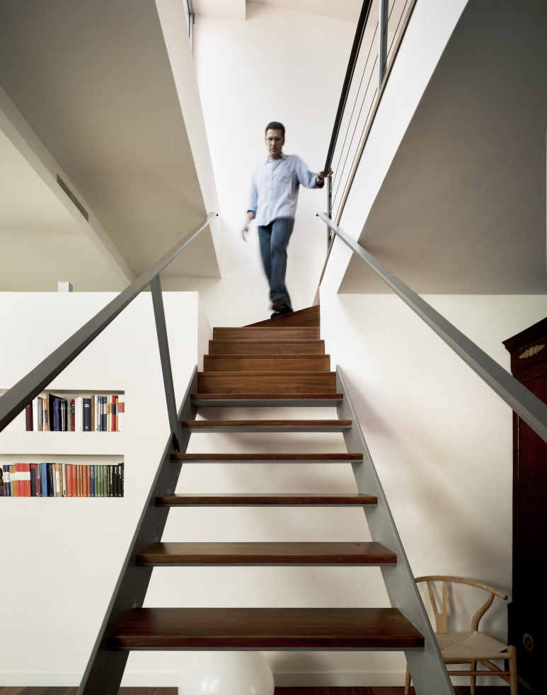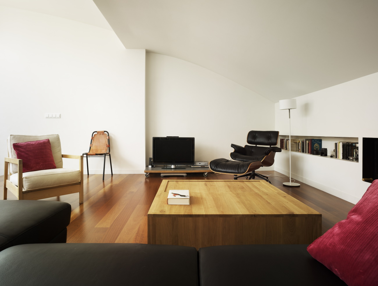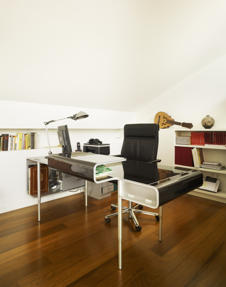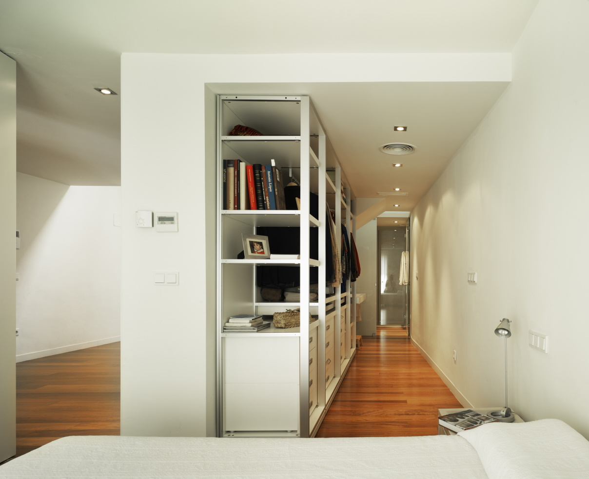 Vivienda de 180 m2 en el centro de la ciudad, estructurada en tres niveles, organizados sobre un espacio común que integra la cocina, comedor, entrada y sala de juegos, comunicado visualmente a través del hueco de la escalera, con el salón situado en el bajocubierta de la planta superior. Un metro más arriba, está situada la terraza. Desde la sala de estar se obtiene una vision de toda la casa.
