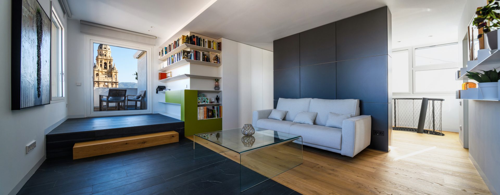Extension of an apartment completed by A&B over 10 years ago, connecting it with the penthouse. The connection is carried out using a leaning spiral stair, due to the structural complexity. The upper floor is a one bed apartment, that can be used seprately. The stair is bespoke, each tread is different.