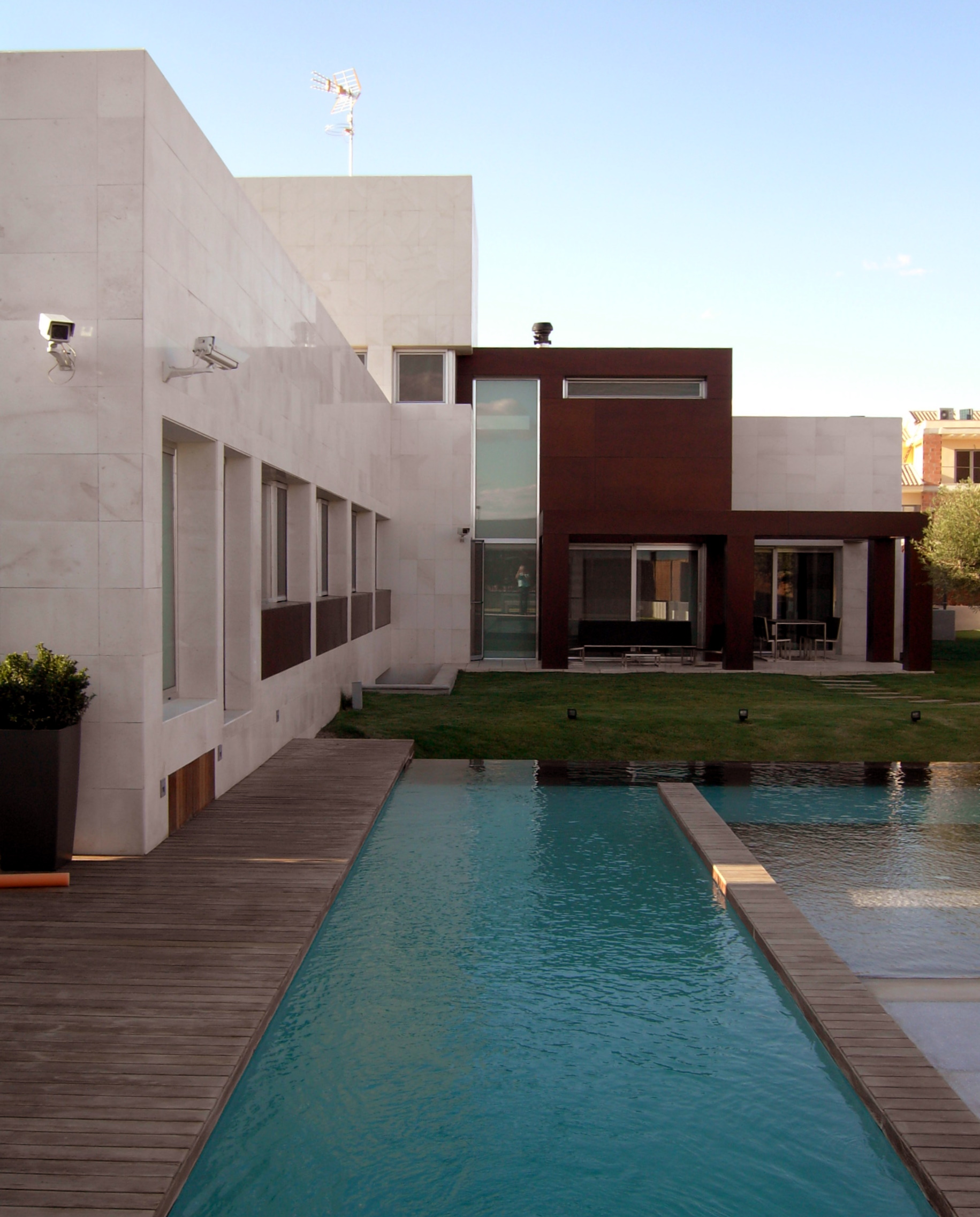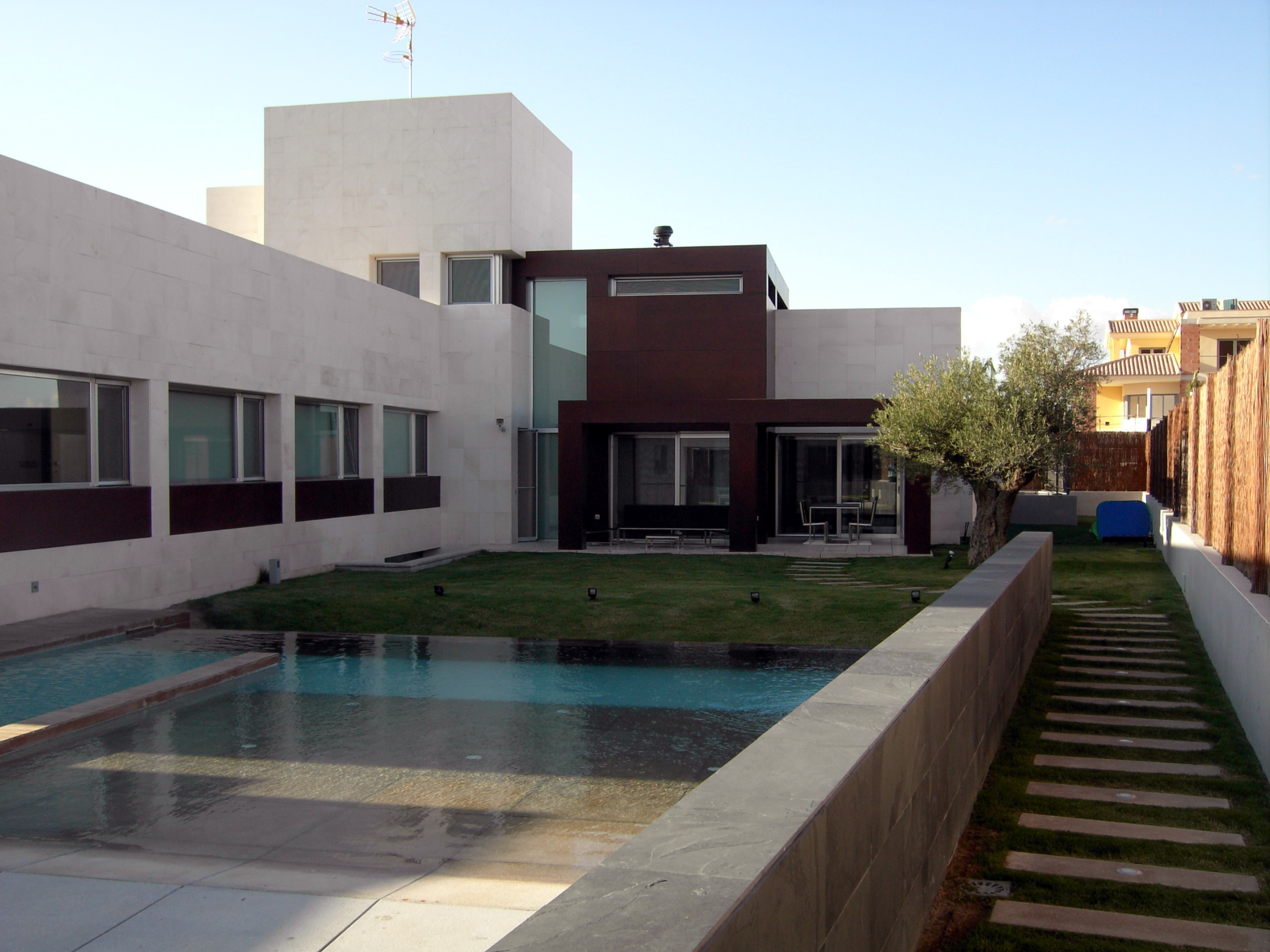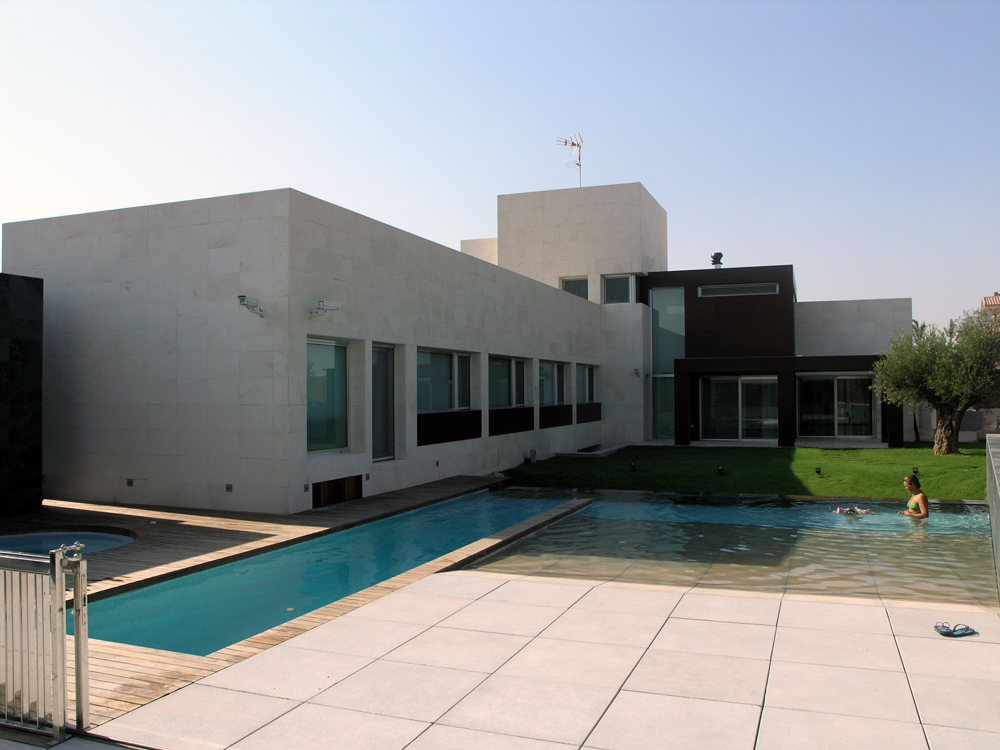 Casa domotizada para familia con 4 niños, salón de doble altura y piscina especial.