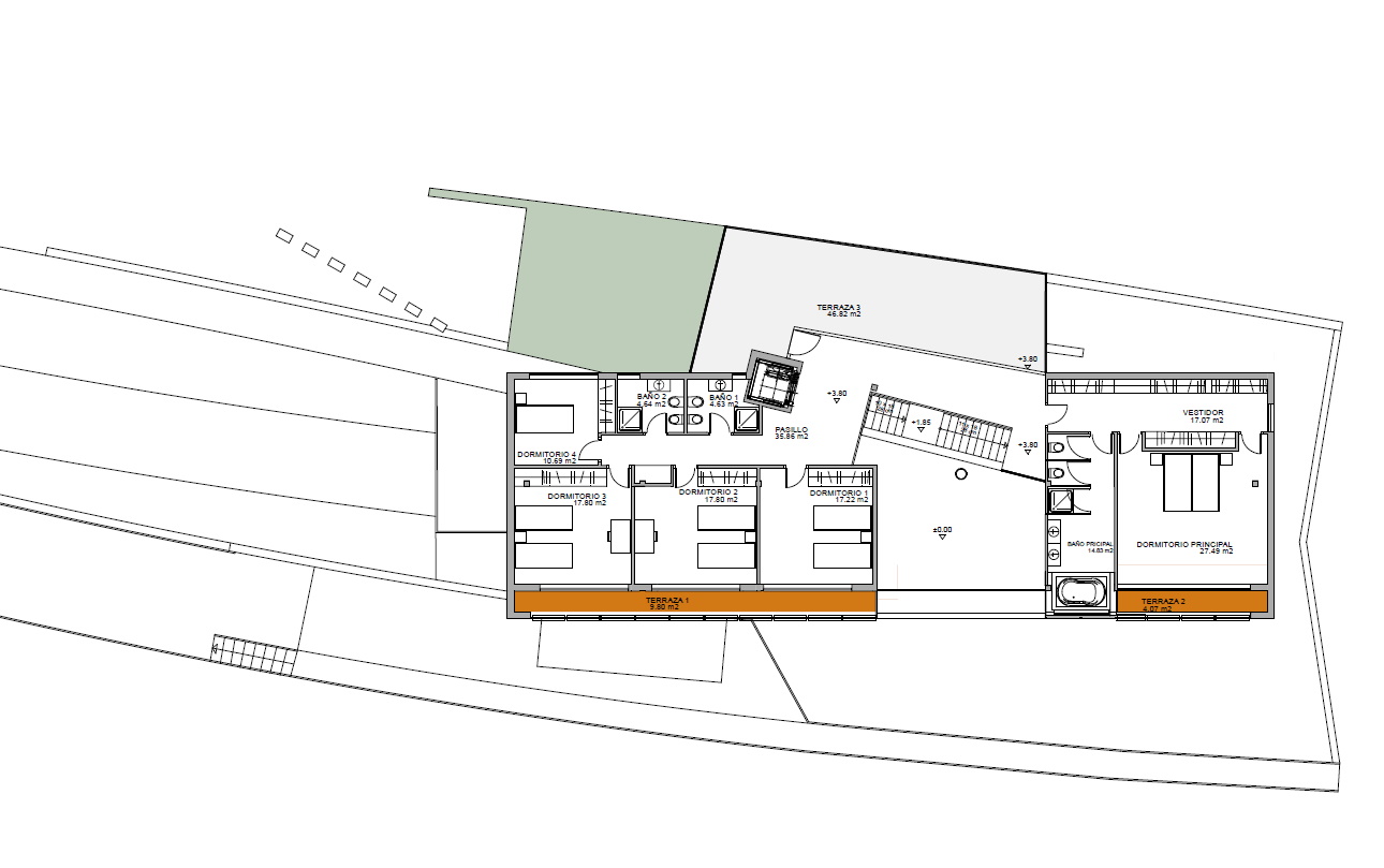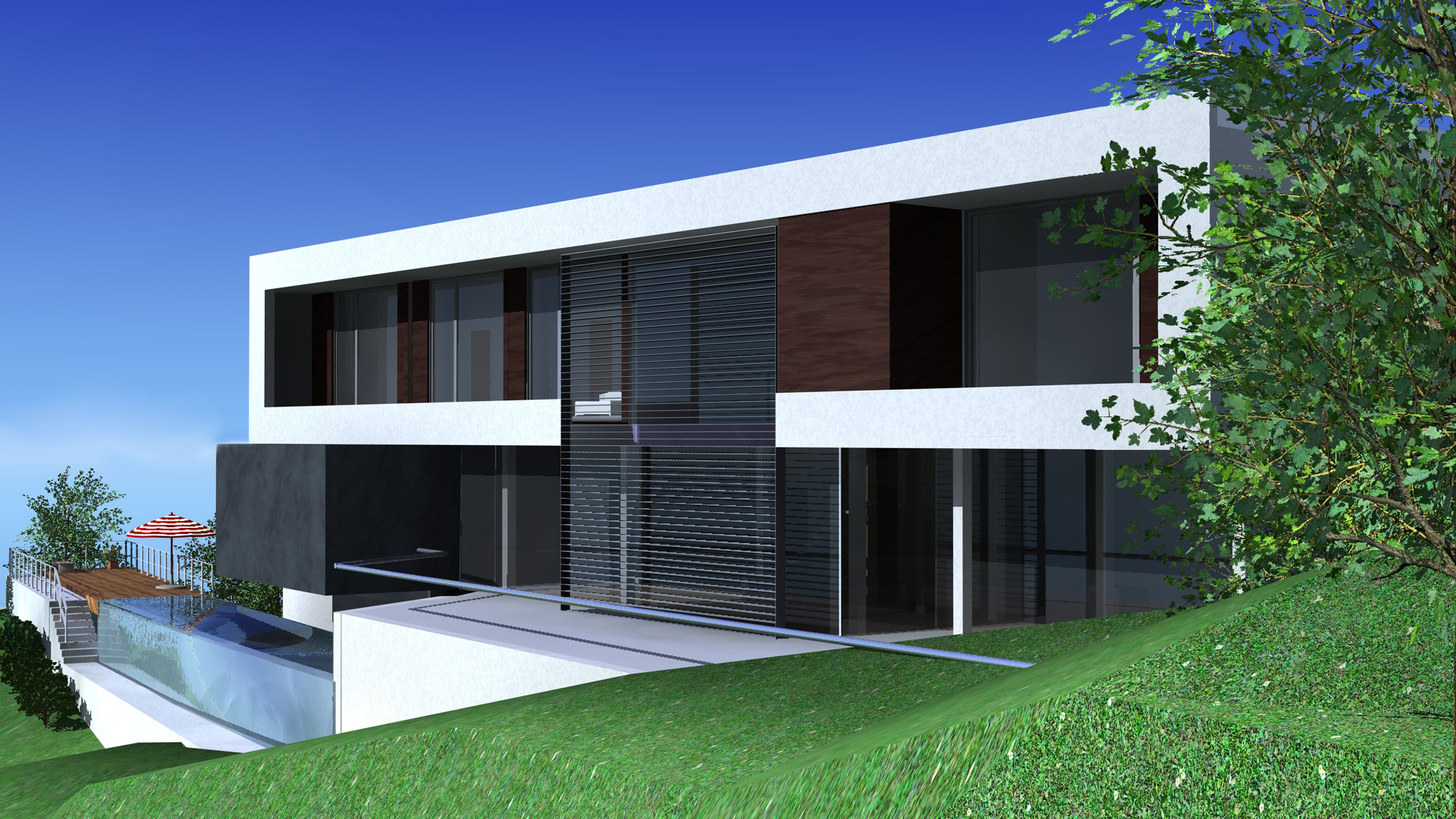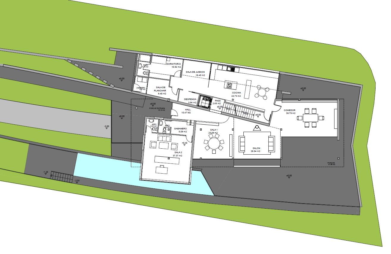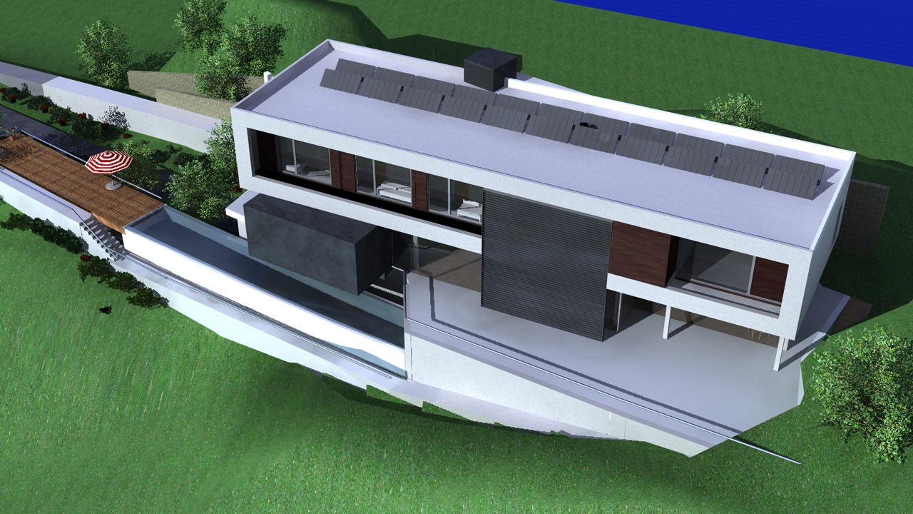 Esta casa está diseñada para un solar con vistas magníficas sobre la ciudad de Murcia. La fachada sur permite que esas vistas entren en la casa, mientras protege del sol.