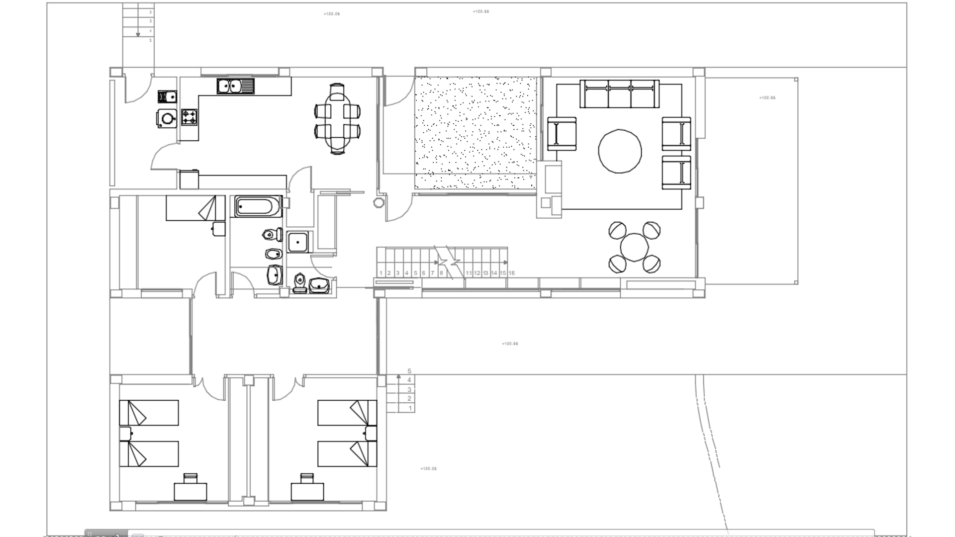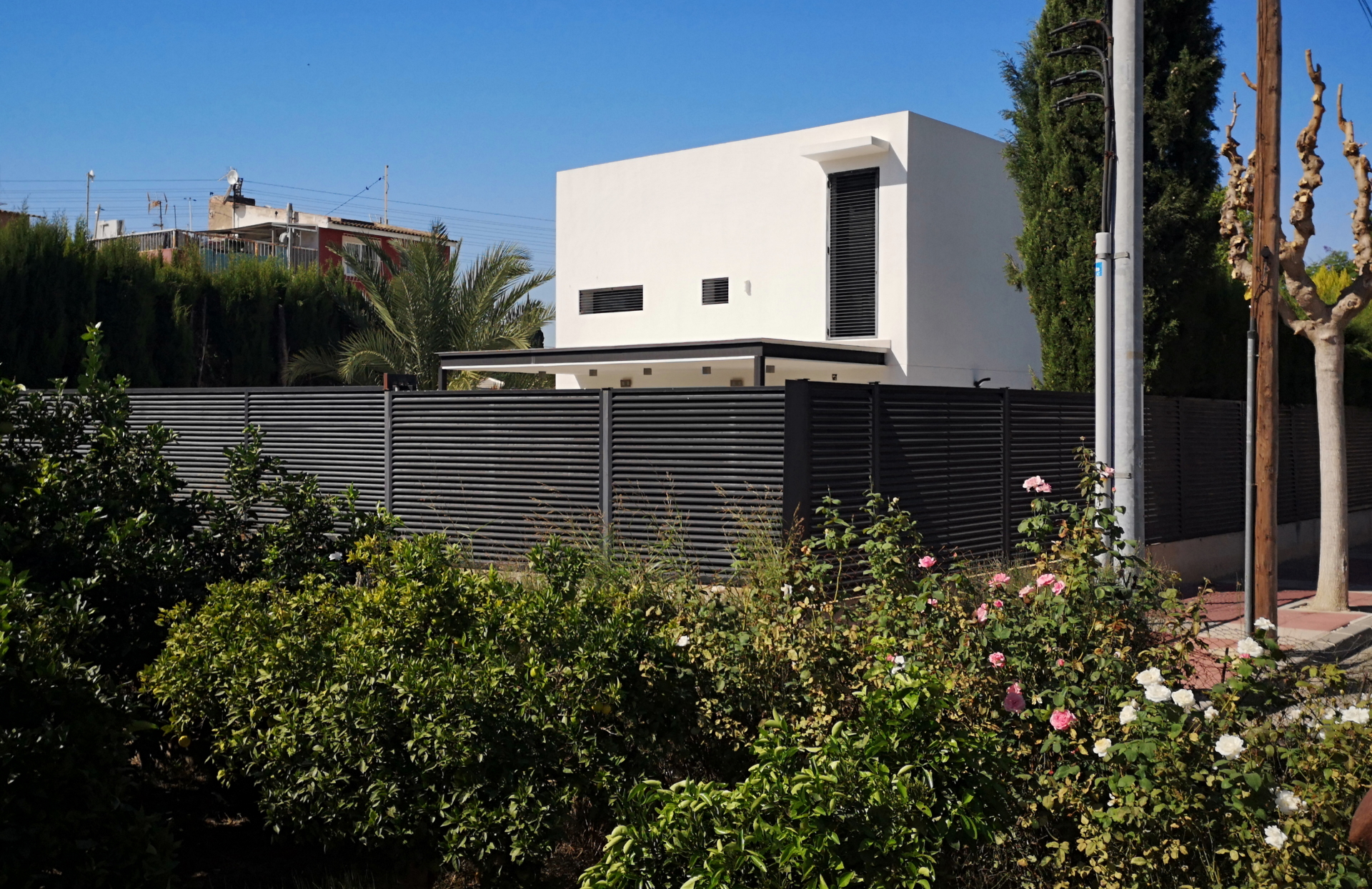 Entre limoneros se emplaza esta vivienda introvertida, con la privacidad como directriz, con vecinos alrededor, desorganizados. Se accede a través de un patio interior, y hay más patios dentro del plano. Las tardes se pasan en la piscina con los amigos.