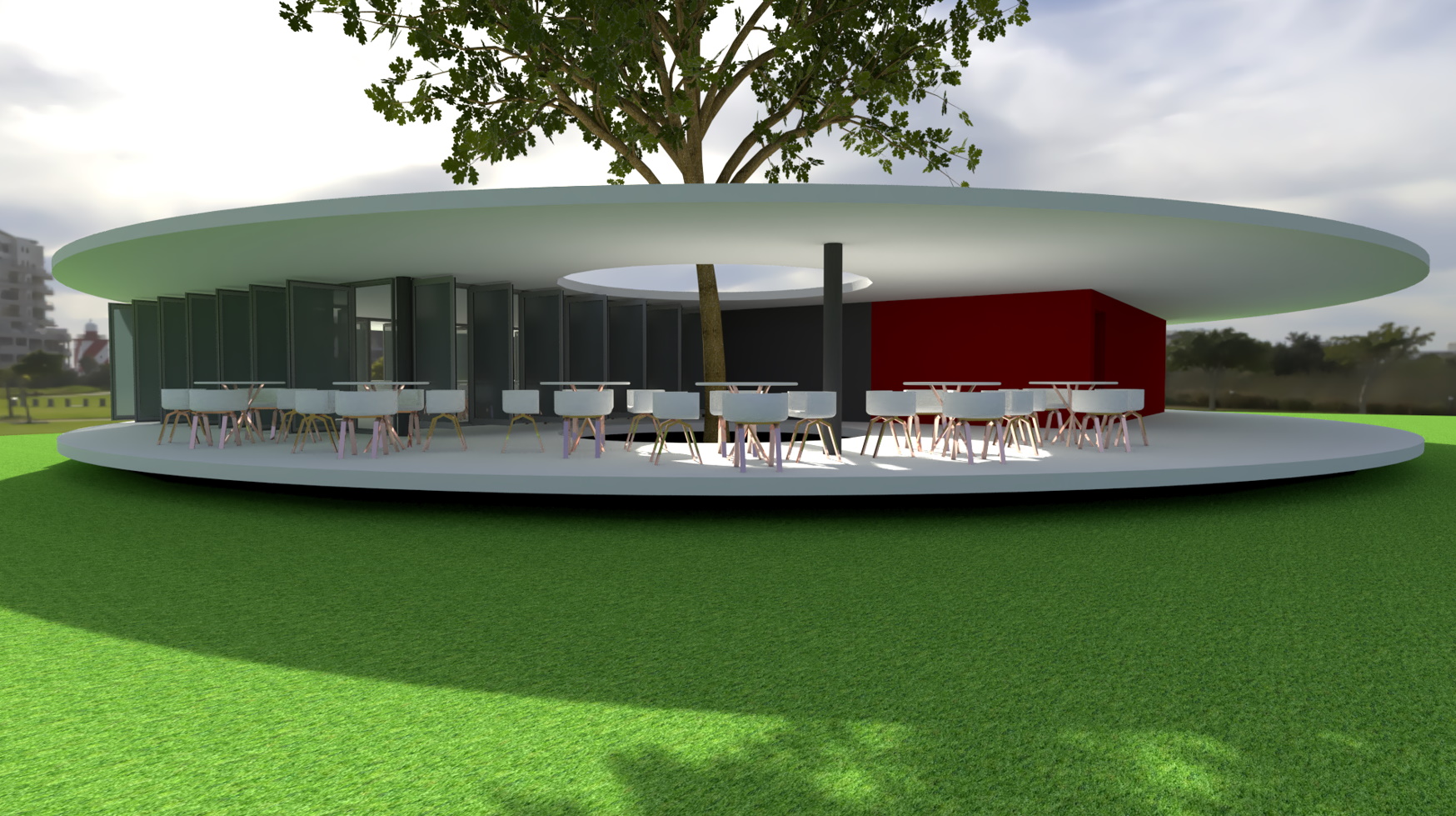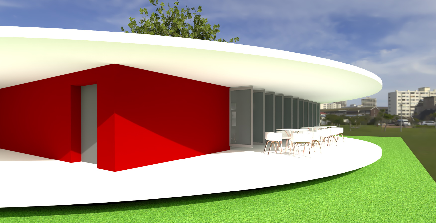Diseño para un pabellón con la función de Casa Club para campo de golf en Port Harcourt, Nigeria. Unos 700 metros cuadrados sombreados, para tomar un refresco después de una ronda.