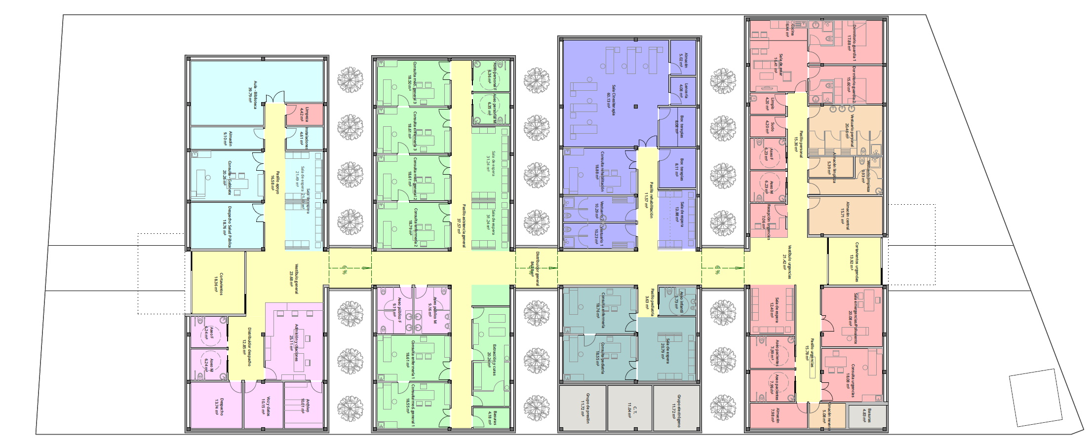 Centro de Atención Primaria en Horcajo de Santiago. Robusta respuesta a las necesidades del programa. Accesibilidad, luz natural, economía de ejecución.