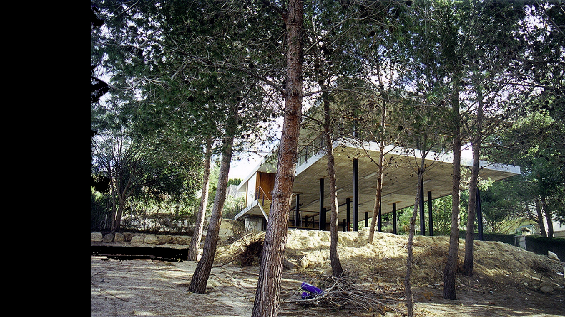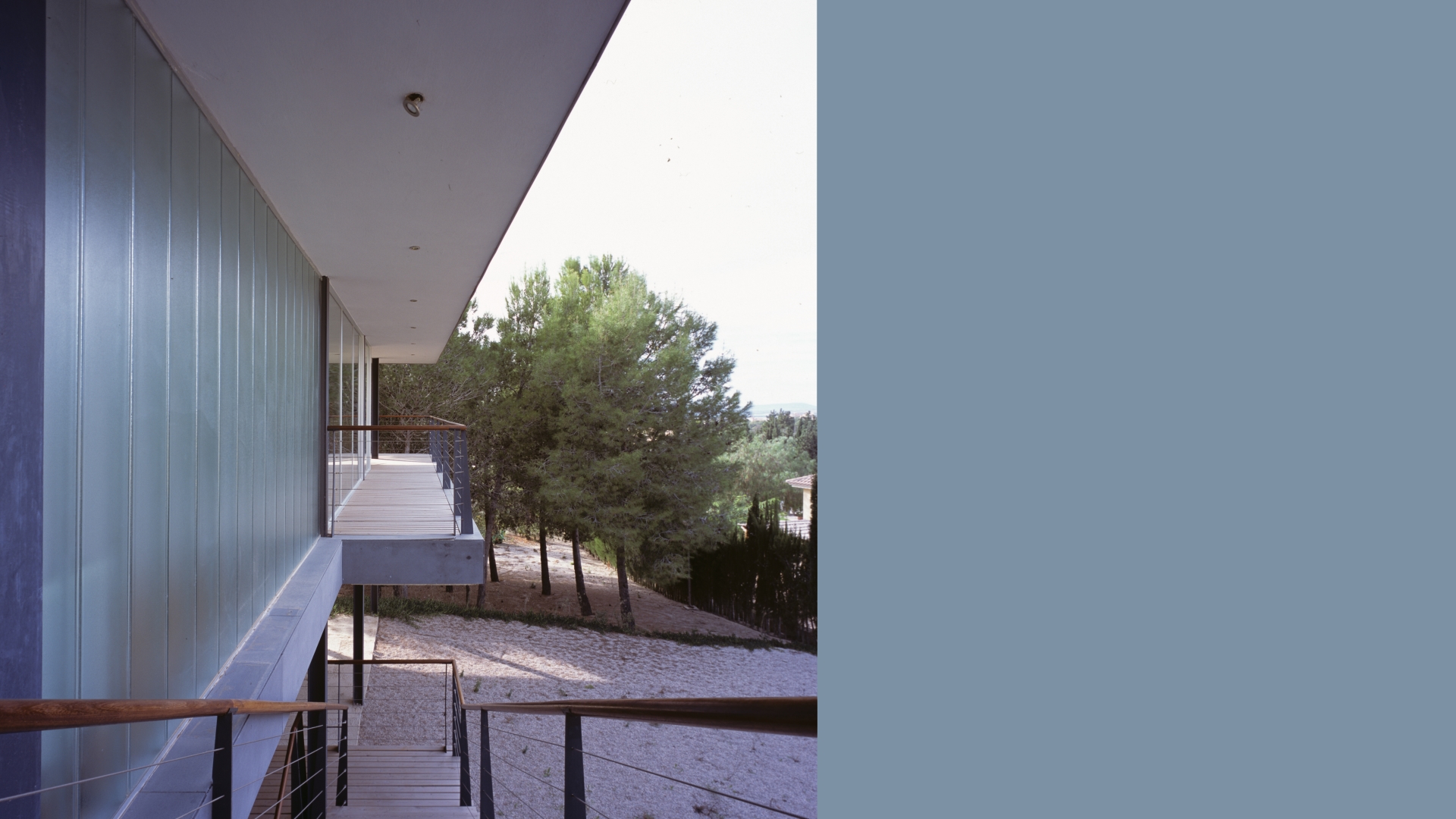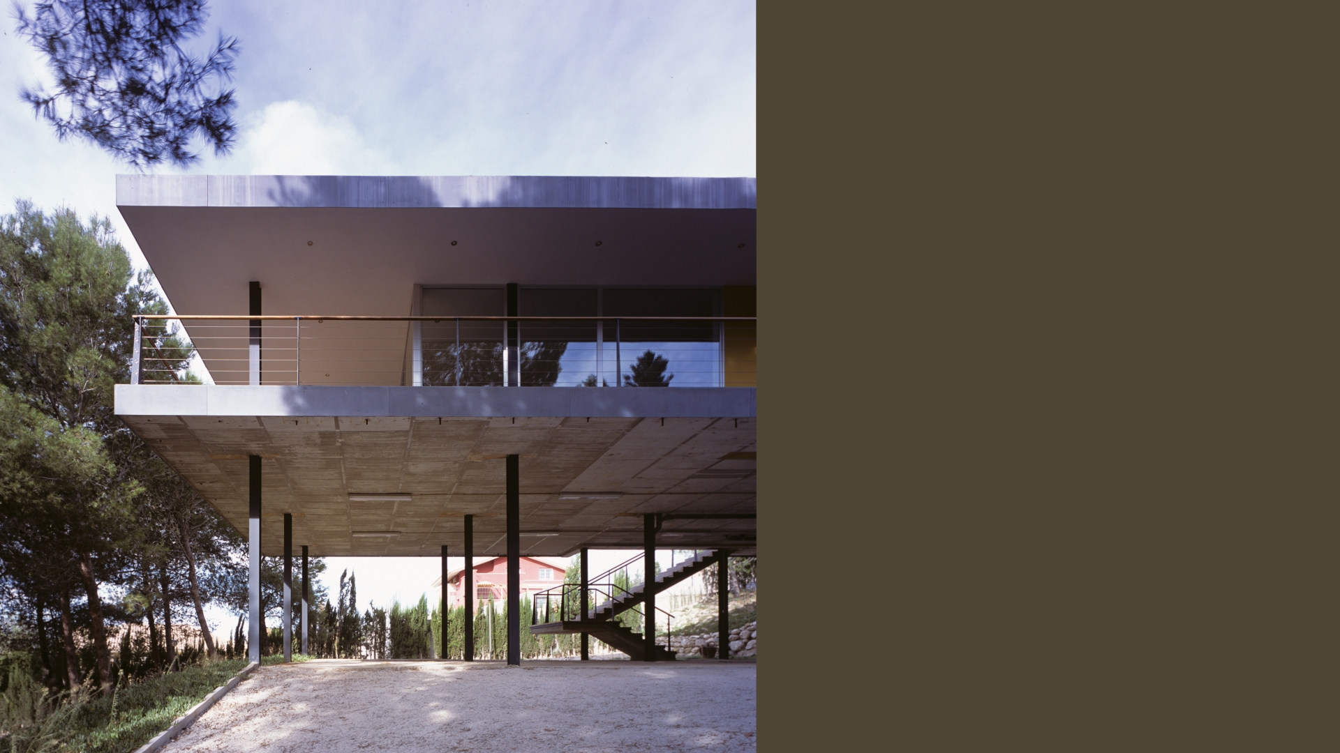 Se buscó hacer una casa integrada al máximo en las condiciones naturales del entorno, entre las que destacaba un bosque de pinos. El programa pedía una vivienda de tres dormitorios, sin escaleras interiores y con posibilidad de ampliación. La normativa en esta parcela exigía 10 metros de retranqueo a la linde, lo que dejaba una zona bastante estrecha para la construcción de la vivienda. La casa está situada en Urbanización La Alcayna.