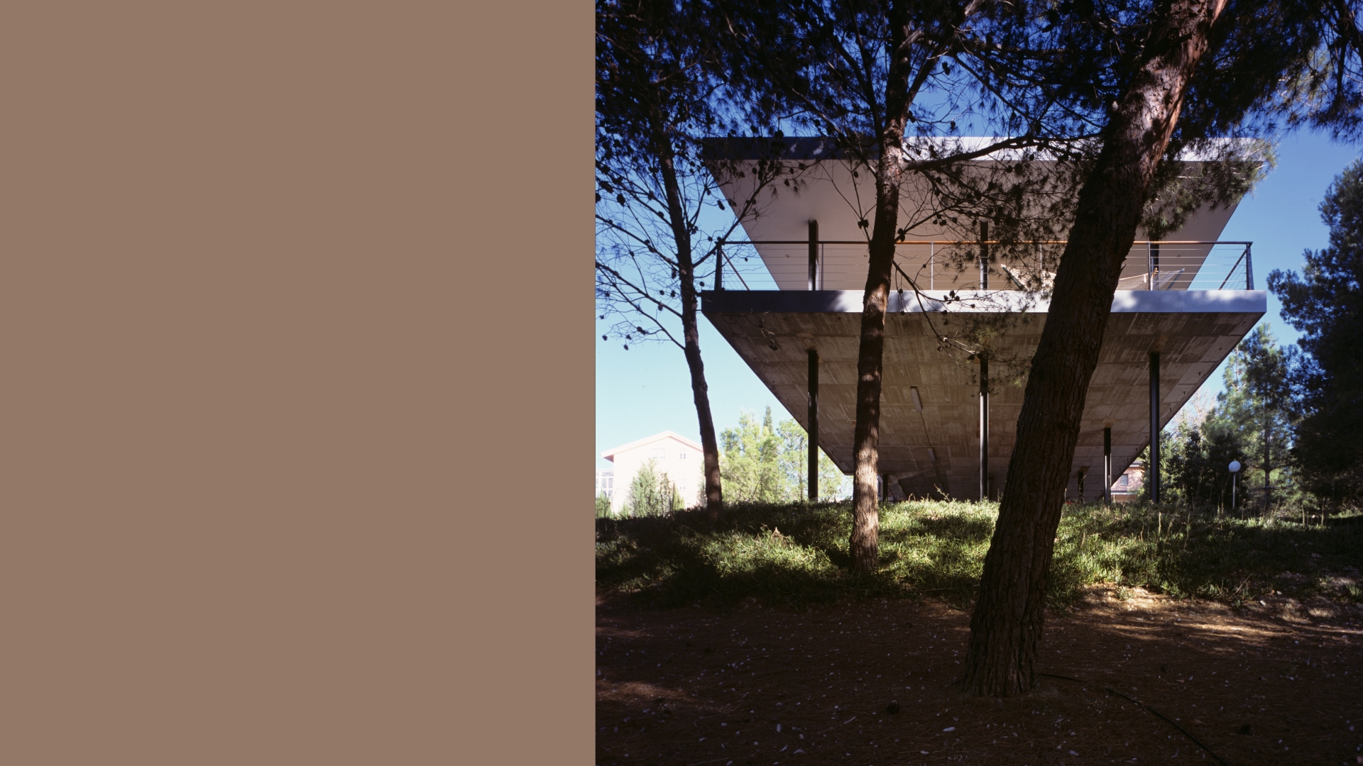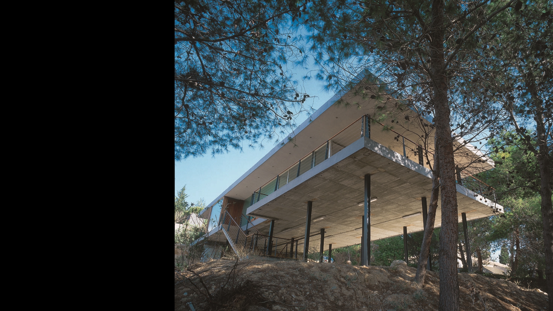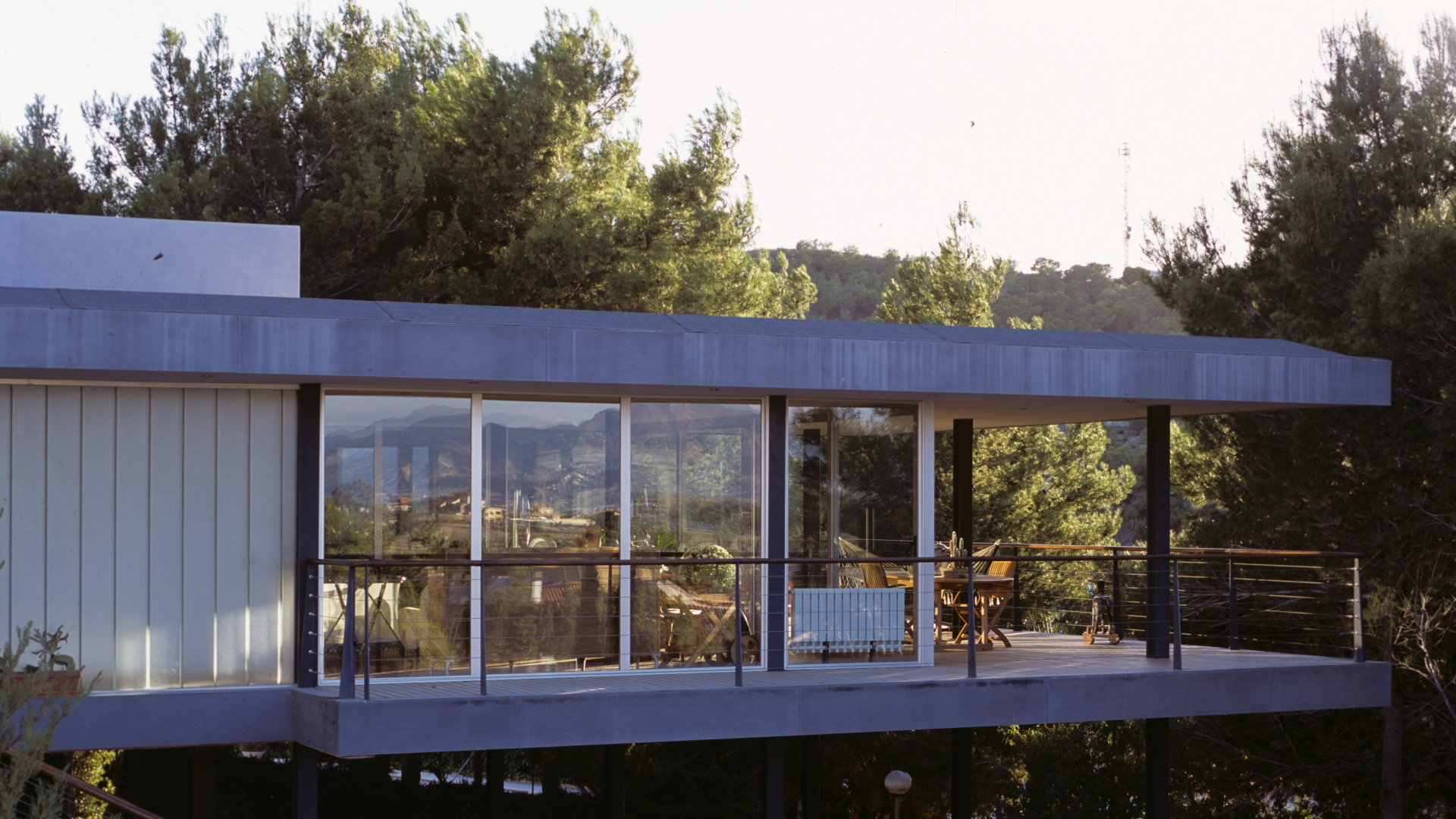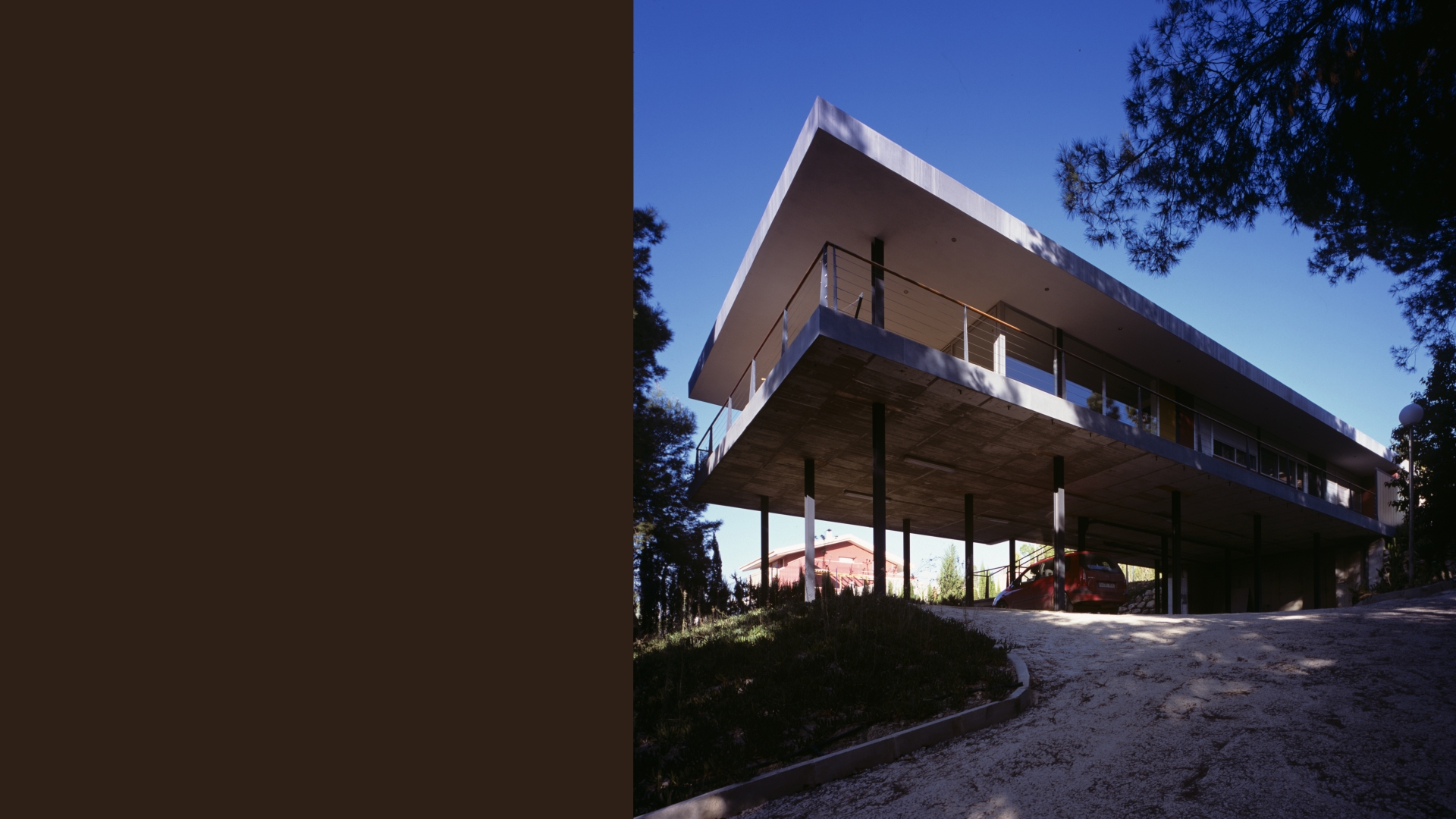 Se buscó hacer una casa integrada al máximo en las condiciones naturales del entorno, entre las que destacaba un bosque de pinos. El programa pedía una vivienda de tres dormitorios, sin escaleras interiores y con posibilidad de ampliación. La normativa en esta parcela exigía 10 metros de retranqueo a la linde, lo que dejaba una zona bastante estrecha para la construcción de la vivienda. La casa está situada en Urbanización La Alcayna.